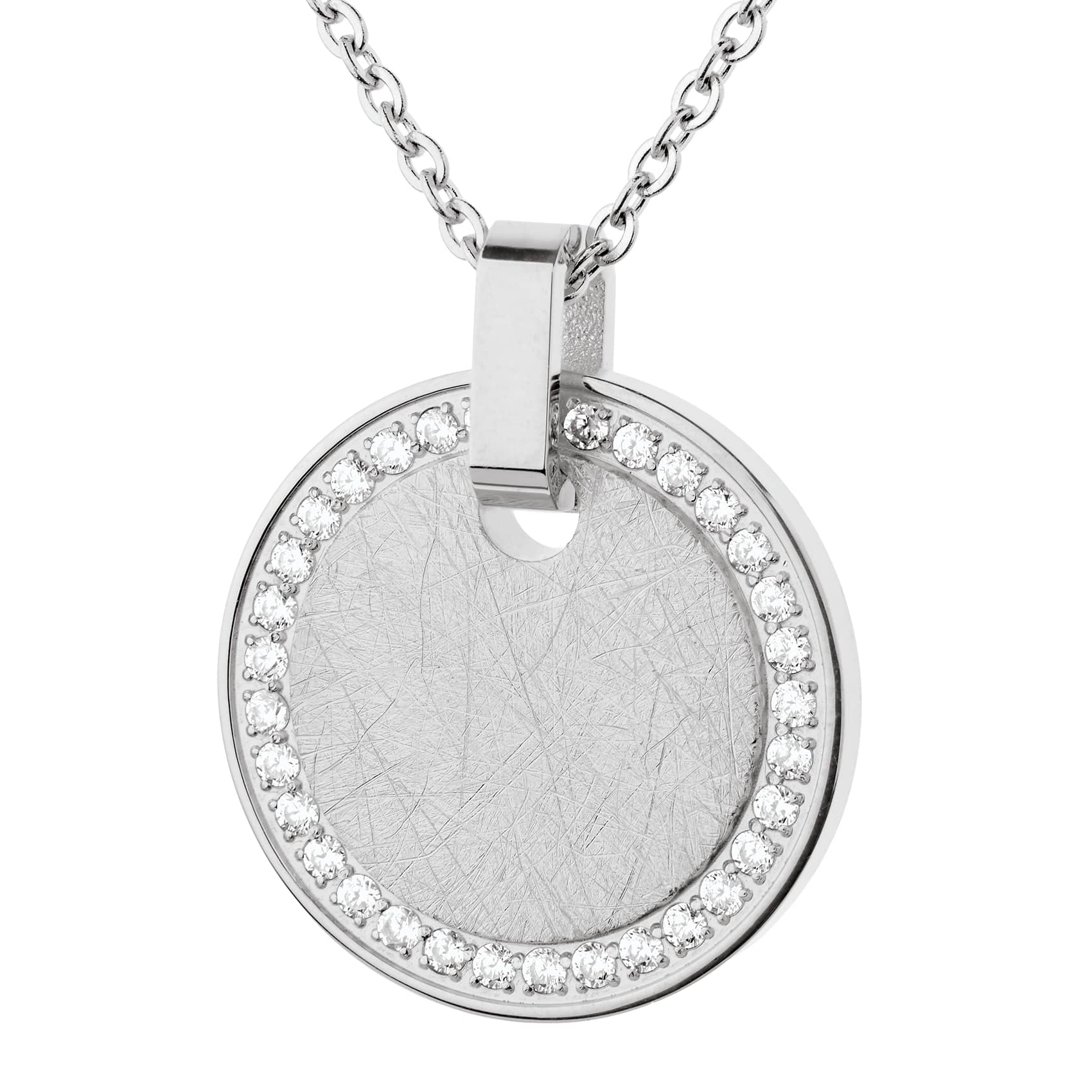 Ernstes Design Anhänger, poliert/gekratzt, Zirkonia white , Edelstahl